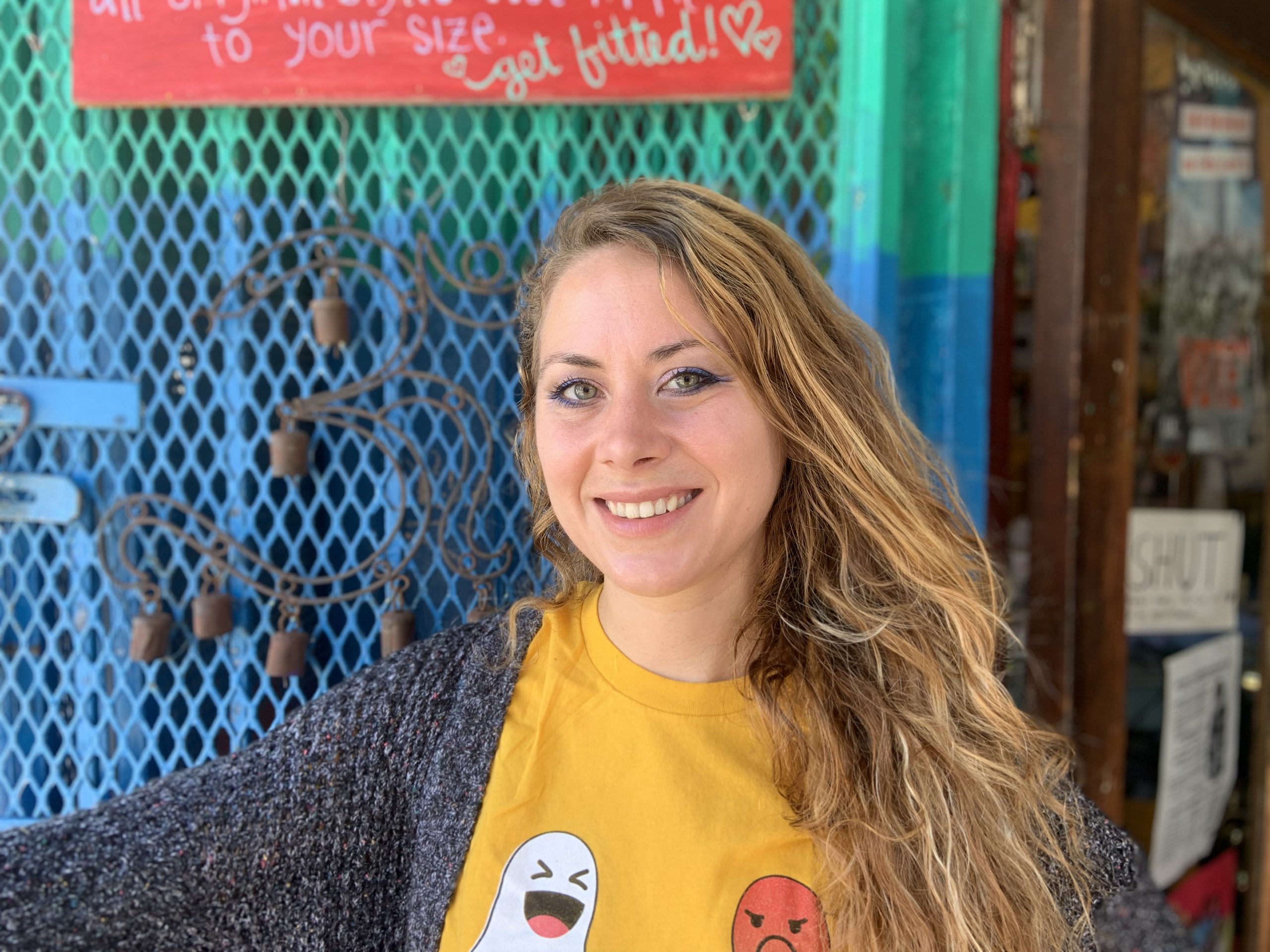 “The shop has always had this energy of being community driven, especially since I live right there,” she said, pointing to a green and orange house with flowers down the street. “The one that looks like the shop,” she said. The shop is also an explosion of color, inside and out.