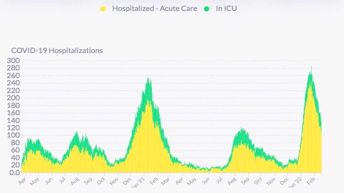 On Feb. 17, DPH reports there were 138 covid hospitalizations, or about 15.7 covid hospitalizations per 100,000 residents (based on an 874,000 population). ICU patients have dropped to their lowest level since Jan. 8. Today, the California Department of Public Health reports 133 covid patients in SF hospitals and 26 ICU patients. Much like the CDC, DPH does not make public information as to vaxxed and unvaxxed hospitalizations nor any demographic data whatsoever making it impossible for the public to know the degree to which populations and neighborhoods have been affected.