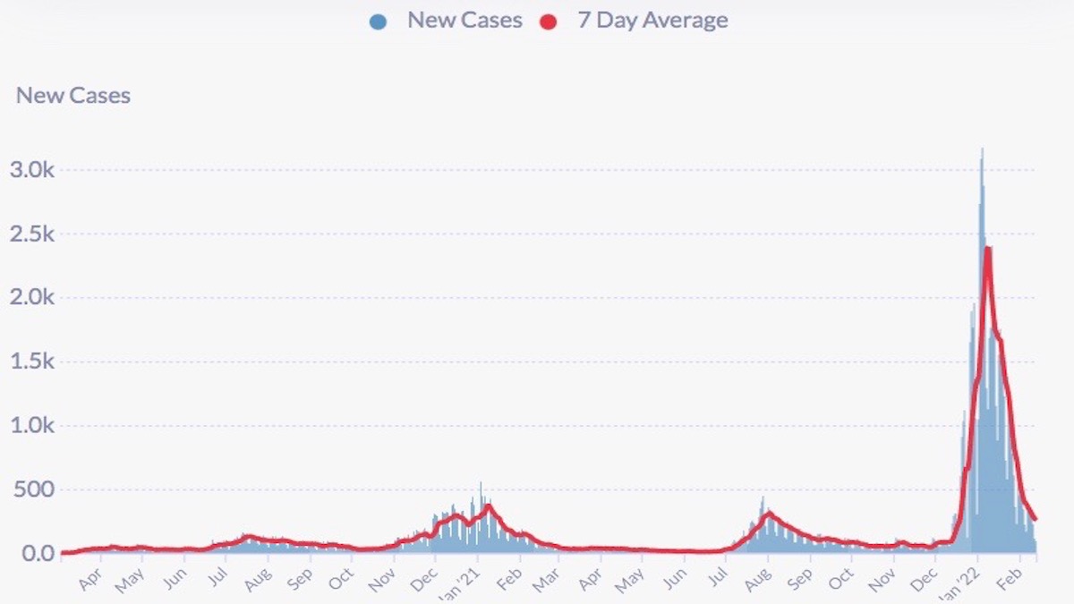 DPH reports on Feb. 15, the 7-day average of daily new infections recorded in the City dropped to 214 or approximately 24.4 new infections per day per 100,000 residents (based on an 874,000 population). According to DPH, the 7-day average infection rate among vaccinated residents was 22 per 100,000 “fully vaccinated” residents and 50.6 per 100,000 unvaccinated residents. It is unclear whether “fully vaccinated” means 2 or 3 doses. For those demanding more numbers from the New York Times, it reports that as of Feb.22, the average number of new infections per day was 161.