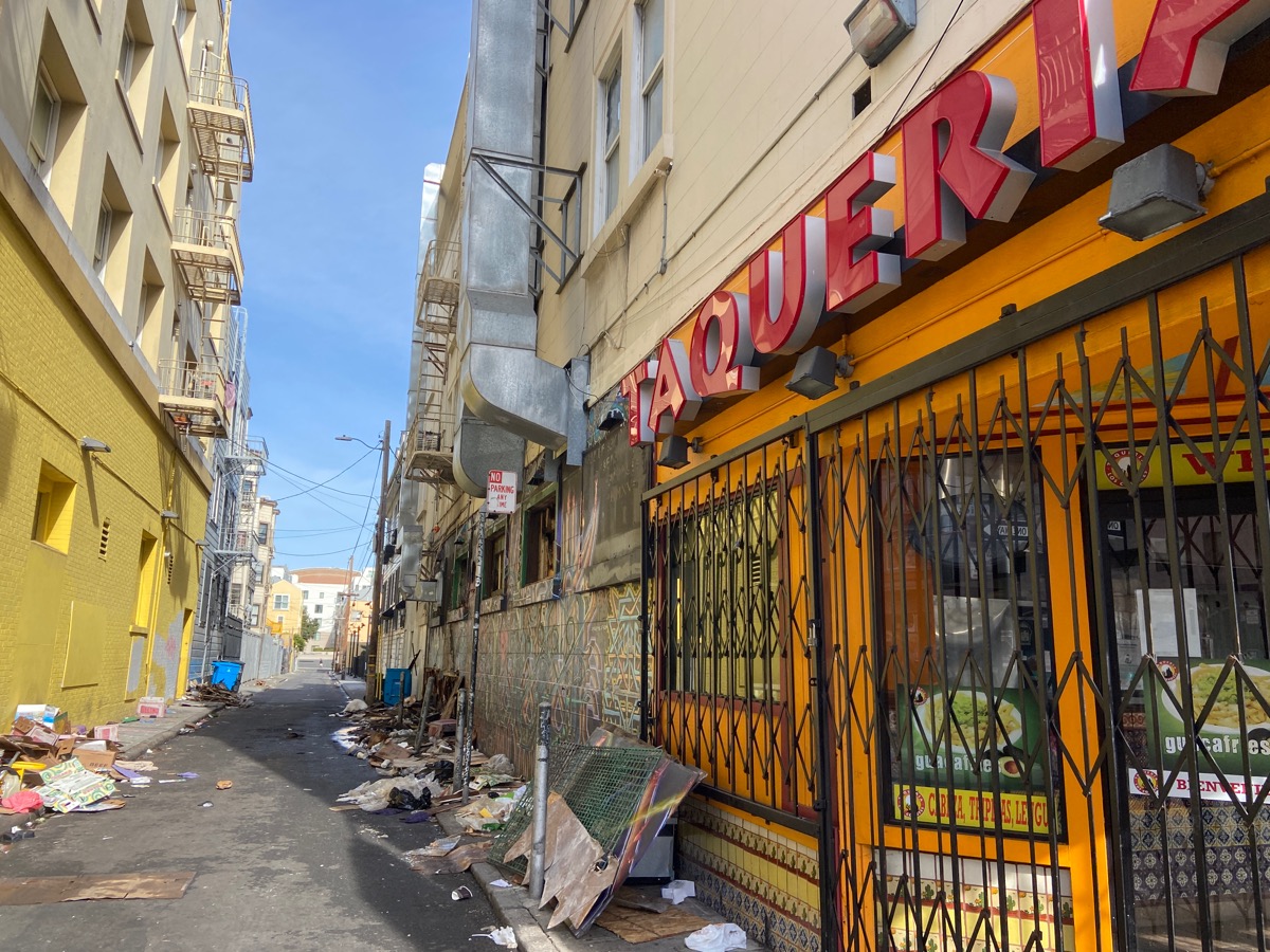 The debris fire that broke out on Wiese Street Thursday entered Taqueria Los Coyotes on 16th Street, displacing the 22 tenants in the three-story building at 3032 16th St. and closing the taqueria for at least the day. Two tenants went to SF General Hospital for smoke inhalation, but were expected to recover, according to the Chronicle.