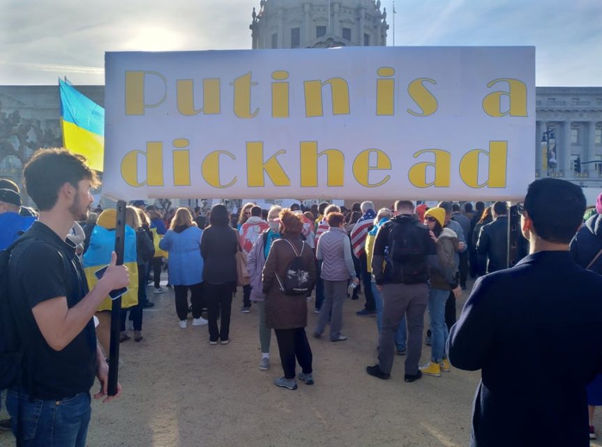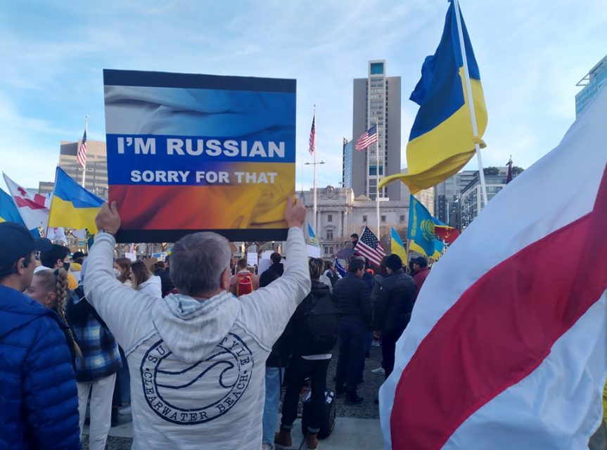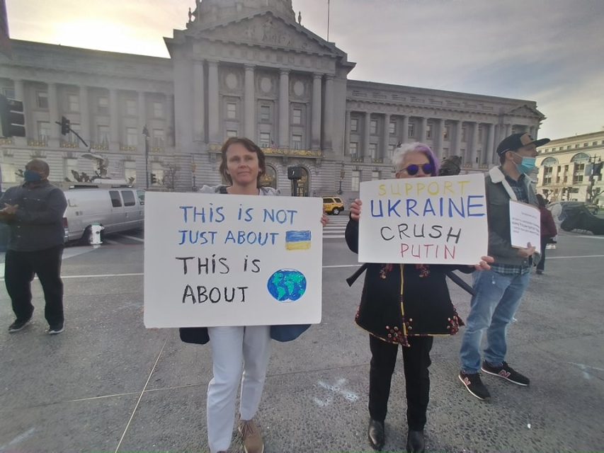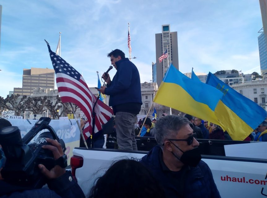 State Senator Scott Wiener also spoke, comparing the Russian invasion with Hitler’s aggression in the 1930s. Wiener is Jewish, and his family traces its roots to Eastern Europe.