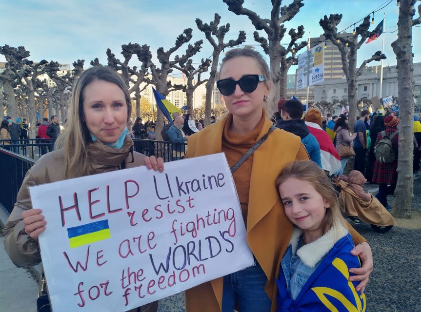 People traveled from all across the Bay to join the demonstrations. Olena Petrova now lives in San Jose after leaving Kyiv about 20 years ago, but she still has family in Ukraine.