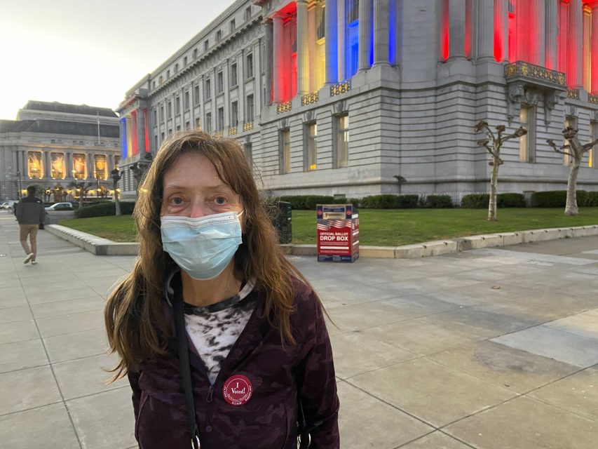 Laura Fox took the 19-Polk bus from the homeless navigation center in Bayview, and ambled up the steps to City Hall a little before 6 p.m. to drop off her ballot.The 75-year-old is a born-and-raised San Franciscan, and has cast ballots in each election. “I never try to miss one! It’s very important,” she said.