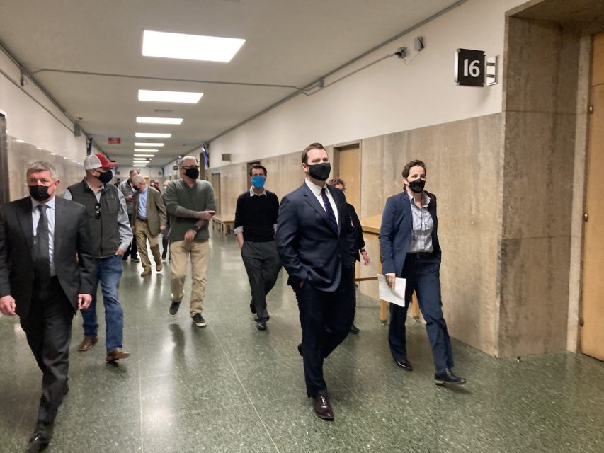Moore told the court that the District Attorney’s office is “still evaluating how to move forward” — whether to dismiss the final charge against Stangel, or to retry him.