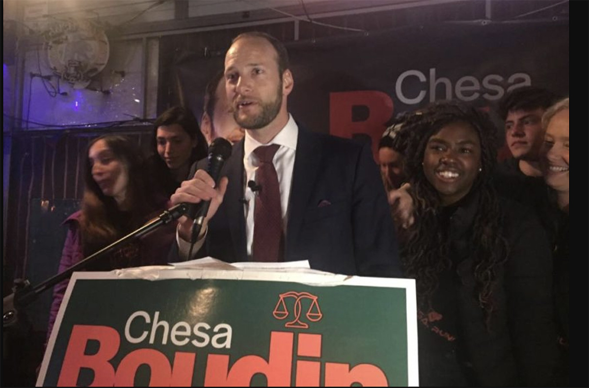 "We won an election, people," Chesa Boudin told supporters on election night, 2019. And, lo, he was right. Photo by Julian Mark.