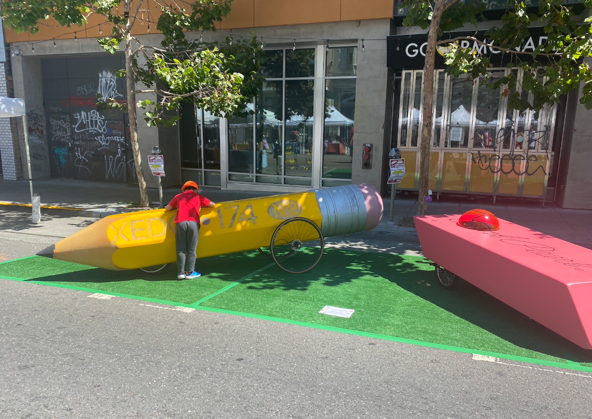 On Saturday, several dozen of those young pirates and their families spilled onto a car-free Valencia Street to celebrate the writing and tutoring center’s 20th Anniversary. They played with shark puppets, giant chessboards and derby cars shaped like pencils and erasers.