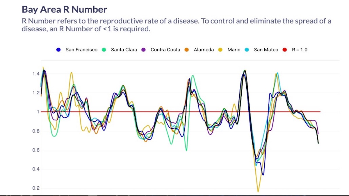 The lack of reliable infection numbers makes R Number estimates very uncertain. Covid R Estimation on August 30 estimated the San Francisco R Number at a surprising .67 while its estimate for the California R Number on September 5 was also .67. The ensemble, on September 4, estimated the San Francisco R Number at .98 and the California R Number at .76. Note: No model in the ensemble shows SF above 1.