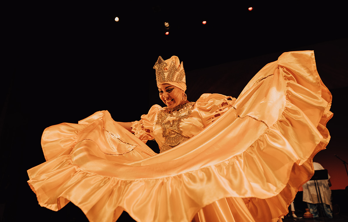 The founder and artistic director of the Festival of Latin American Contemporary Choreographers (FLACC), she and her team had spent months working on water-centric “sii agua sí,” a site-specific performance designed for the 18th Street/Mission Creek Corridor’s American Indian Cultural District. But when an atmospheric river forced the event inside at the last minute, they crammed as many of the activities as possible into Dance Mission Theater, where water also flowed, at least symbolically.