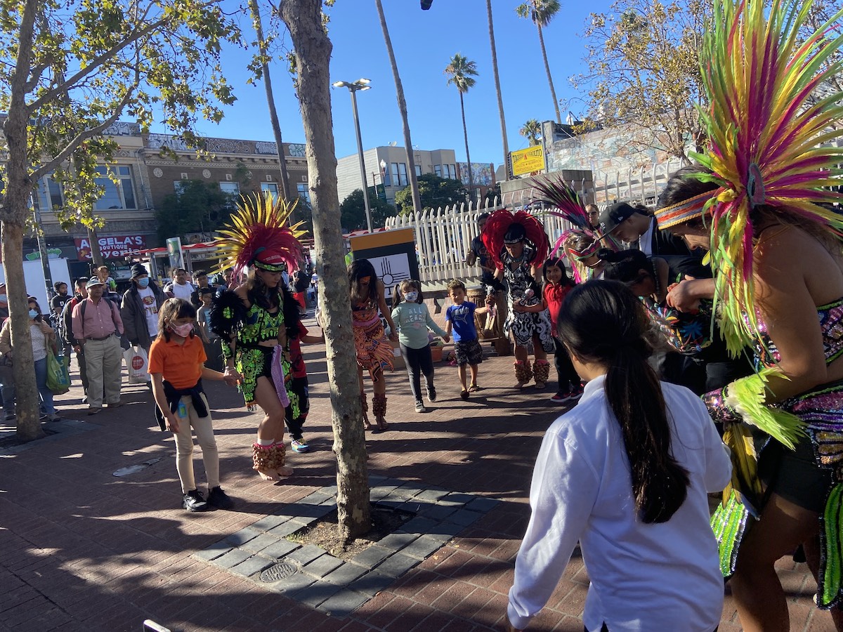 The rally began as many Mission events traditionally do: A little late, full of affectionate shout-outs to neighbors and friends, and kicked off by prayer and Aztec dancing. “Creator, we ask you, clean this space from all and any pain, anger, hatred and fear, and replace it with love and peace,” said an indigenous leader named Mary.