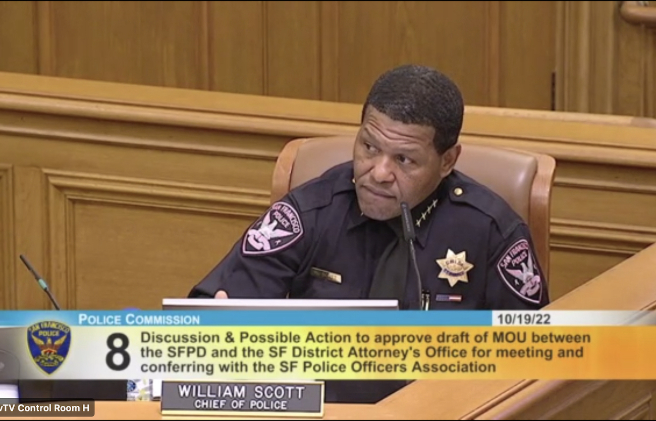 The attempt to revise the memorandum of understanding came after Police Chief Bill Scott unilaterally announced the SFPD’s withdrawal from an earlier agreement, on the eve of former DA Chesa Boudin’s prosecution of Officer Terrance Stangel — the city’s first criminal case against an officer for a use-of-force incident.