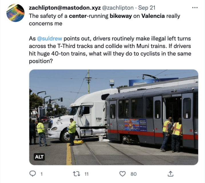 Valencia has to be one of the most chill streets to bicycle on. The only reason why there are many bike involved collisions is because there are so many cyclists. I’d bet that the bike involved collision rate, collisions per cyclist-mile, is probably lower on Valencia than other streets.
