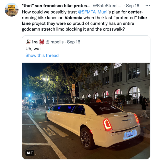 Since the plan was released in September, bike and pedestrian advocates have taken to the internet to blast the new proposal or suggest alternative plans of their own. One Streetsblog SF article called the proposal “ridiculous.”
