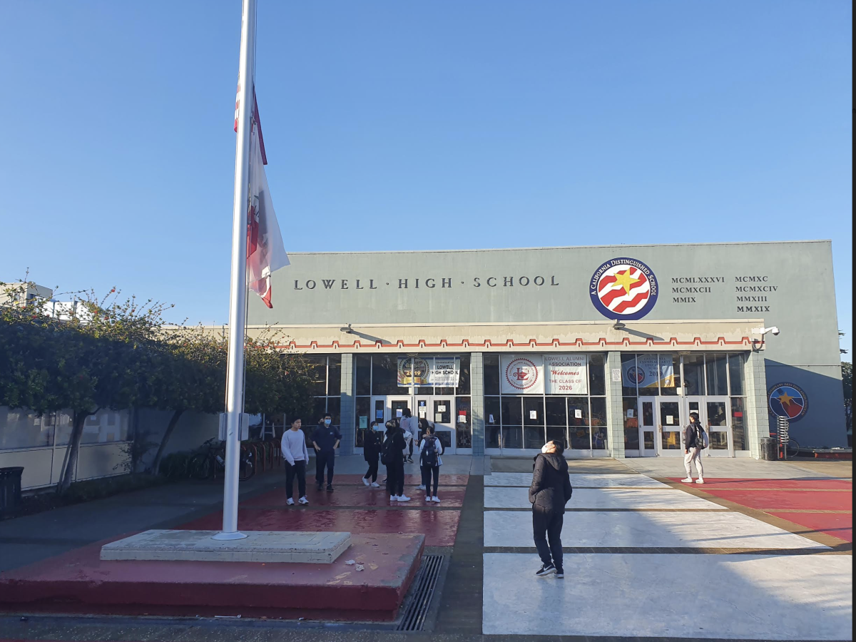At around 9 a.m. on Wednesday, 20 minutes after school had started, a group of several students was standing in front of Lowell by the drop-off area, while the school’s front courtyard with the flagpole, normally bustling with dozens of students, had only a handful.