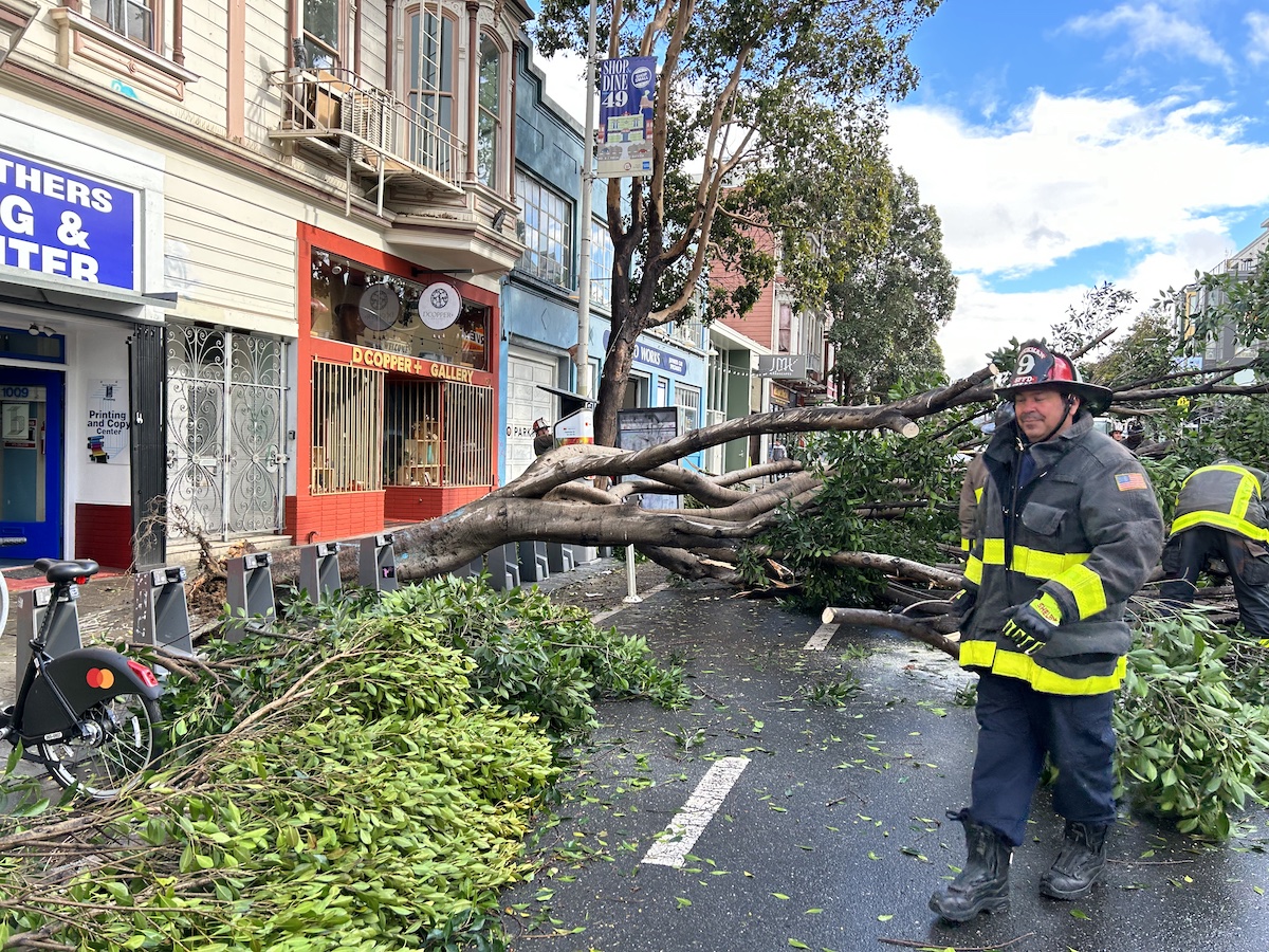 When Mission Local asked the firefighters to comment at Valencia and 21st, they said they had no time. “There’s, like, 30 trees down all over the city,” one firefighter apologetically explained as his team sawed the tree. “After this, we have to go to the next one.”