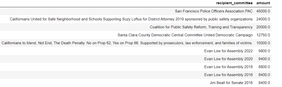 The San Jose union sent $45,000 north to the San Francisco union between late 2015 and January, 2023. Additionally, it contributed $24,000 to the 2019 political action committee supporting Suzy Loftus in the San Francisco DA’s race against Chesa Boudin. The San Francisco police union quarterbacked that fundraising effort, passing the hat among fellow unions to raise more than $650,000 to buttress Loftus against Boudin — a failed effort that may even have been counterproductive.