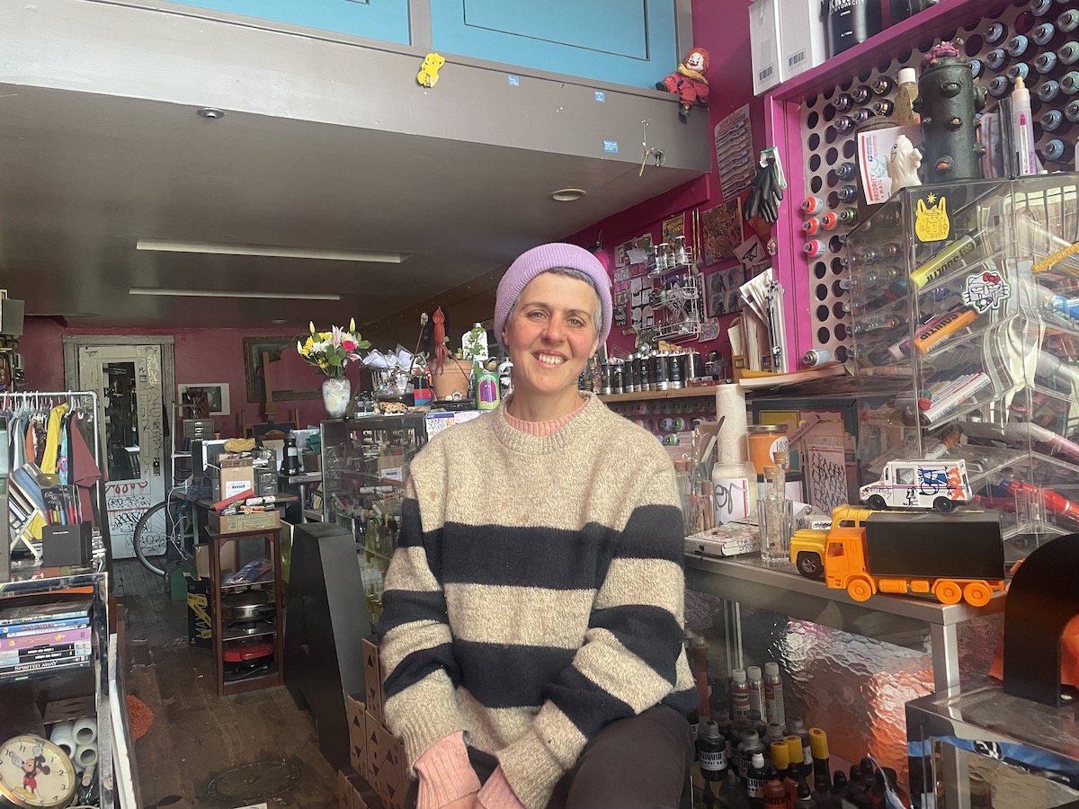 Spray paint doesn’t always evoke positive feelings, especially in the Mission these days, as business owners battle the nuisance and cost of persistent graffiti. But Philomena, the owner of À.pe, a curiosity shop at 3386 18th St. that sells spray paint alongside thrifted clothing, locally-sewn backpacks, and carnivorous plants, is making an effort to create spaces for street artists to legally practice their craft.