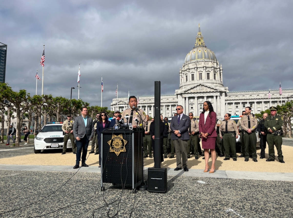 En una rueda de prensa celebrada a las 9 de la mañana en Civic Center Plaza, la Oficina del Sheriff de San Francisco anunció el despliegue de 130 agentes para detener a personas que consuman drogas en público.