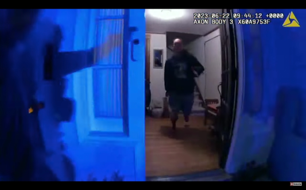 Tras el tiroteo, los agentes entraron en la casa para examinar la escena. En unas imágenes borrosas, un agente afirma que encontraron a una mujer y a un perro, ambos muertos en el suelo.