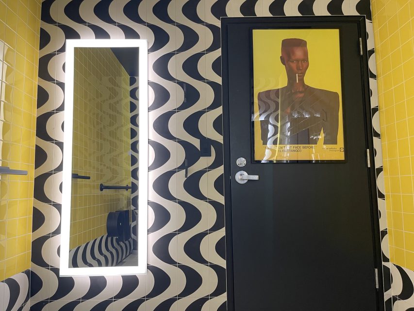 Grange and Rincon refer to the ADA restroom as the “Grace Jones bathroom”, due to the portrait of Jones that hangs on the door.