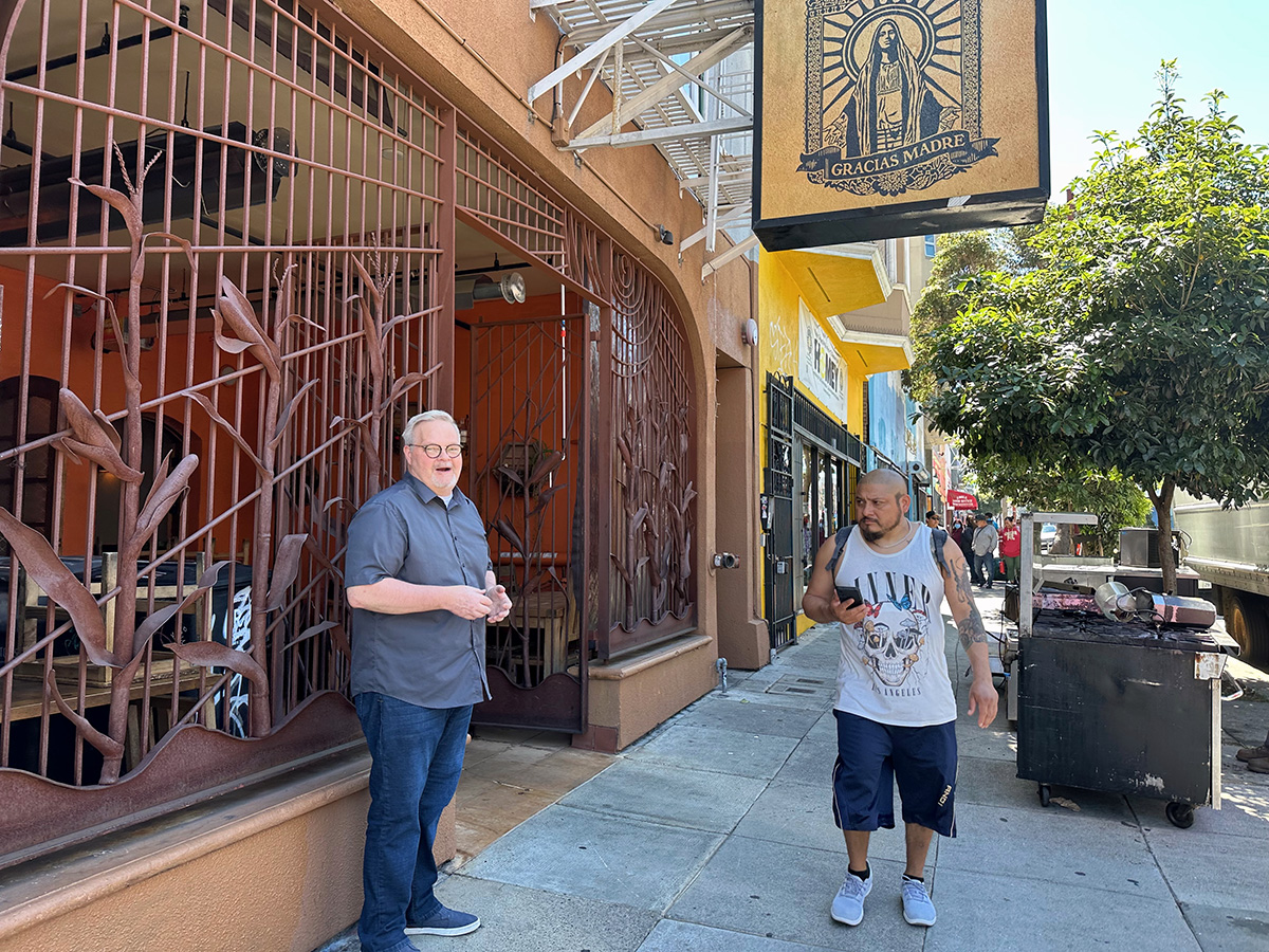 Look at this, he added, taking a reporter out to the sidewalk to show where a string of street lights the city had put up along Mission Street stopped on the other side of 18th Street. “It doesn’t make any sense to any of us,” he said.