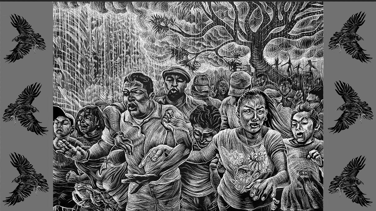 Curated by Marco Antonio Flores, “Me Llaman Calle: The Monumental Art of Juana Alicia” runs through Sept. 23 and features sketches for several iconic murals, pages from Alicia’s sketchbooks, and illustrations from a forthcoming graphic novel with her husband, writer and artist Tirso González Araiza. Presented as a hand-printed artist’s book in codex form, the project reclaims La X’tabay, a Yucatec femme fatale who “seduces and murders her victims when she meets philanders in the jungle at night,” Juana Alicia said. “Tirso has rewritten the traditional story with a feminist twist.”