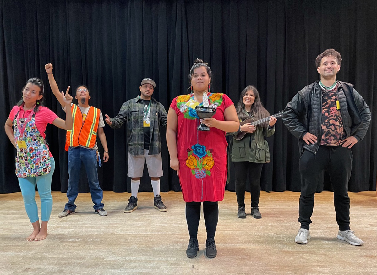 The performance, an excerpt of a work-in-progress that will premiere next year, features dancer Andreina Maldonado, spoken-word artist David Calderon, cellist Claudia Portillo, percussionist Pedro Gomez, guitarist Manolo Davila, dancer and designer Jessica Recinos and the traditional Aztec dance troupe Danza Azteca Mixcoatl.