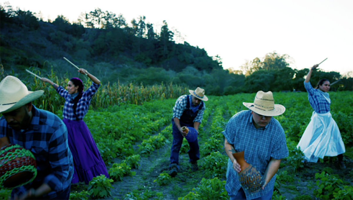 The music and dance can evoke indigenous farming practice that used three staple crops to support the health of the land (beans, corn, and squash), Sanchez said. The agricultural triumvirate is reflected in a succession of trio choreographies and polyrhythmic sections with three interlocking grooves.