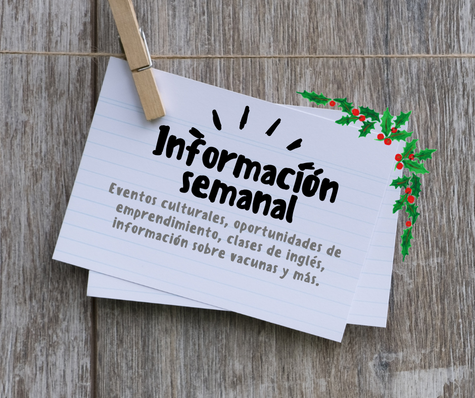 Te compartimos información relacionada con eventos navideños, oportunidades para mejorar tu inglés, información sobre eventos culturales, detalles sobre programas de emprendimiento y más.