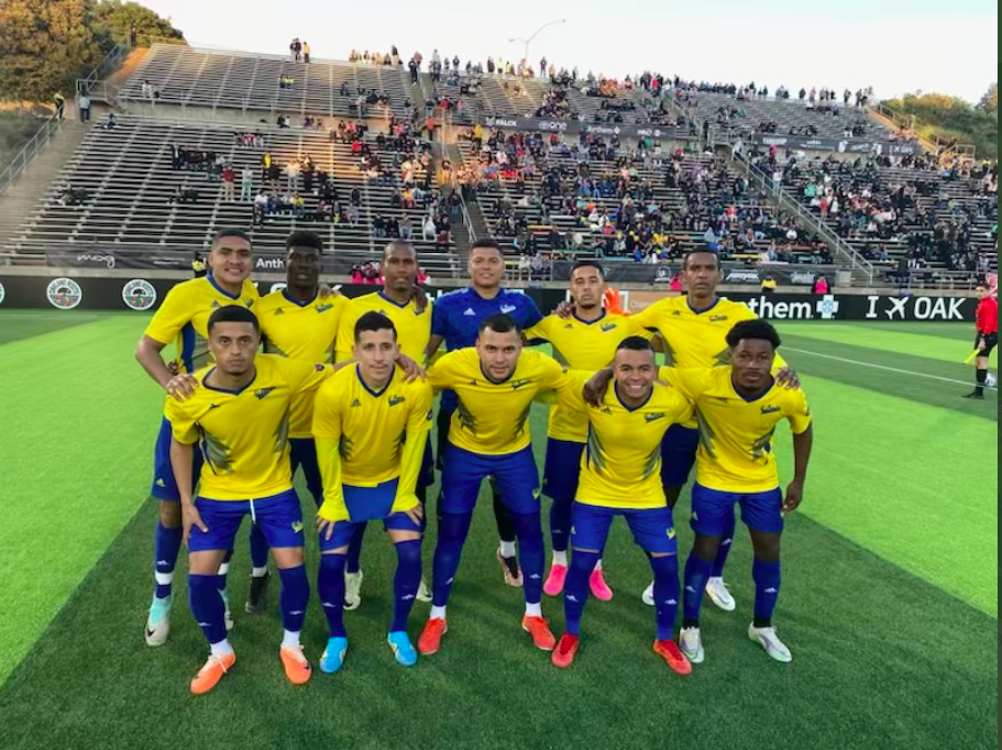 The El Farolito soccer team, moments before Tuesday's U.S. Open Cup contest vs. the Oakland Roots at Pioneer Stadium in Hayward. The Roots prevailed, 2-1, in extra time. Photo by Wilfredo Hernández'