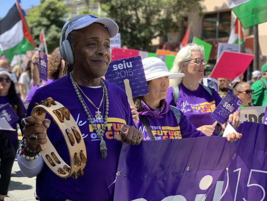 Boxinett King, a home healthcare worker, marches with May Day workers march on May 1, 2024. Photo by Eleni Balakrishnan.