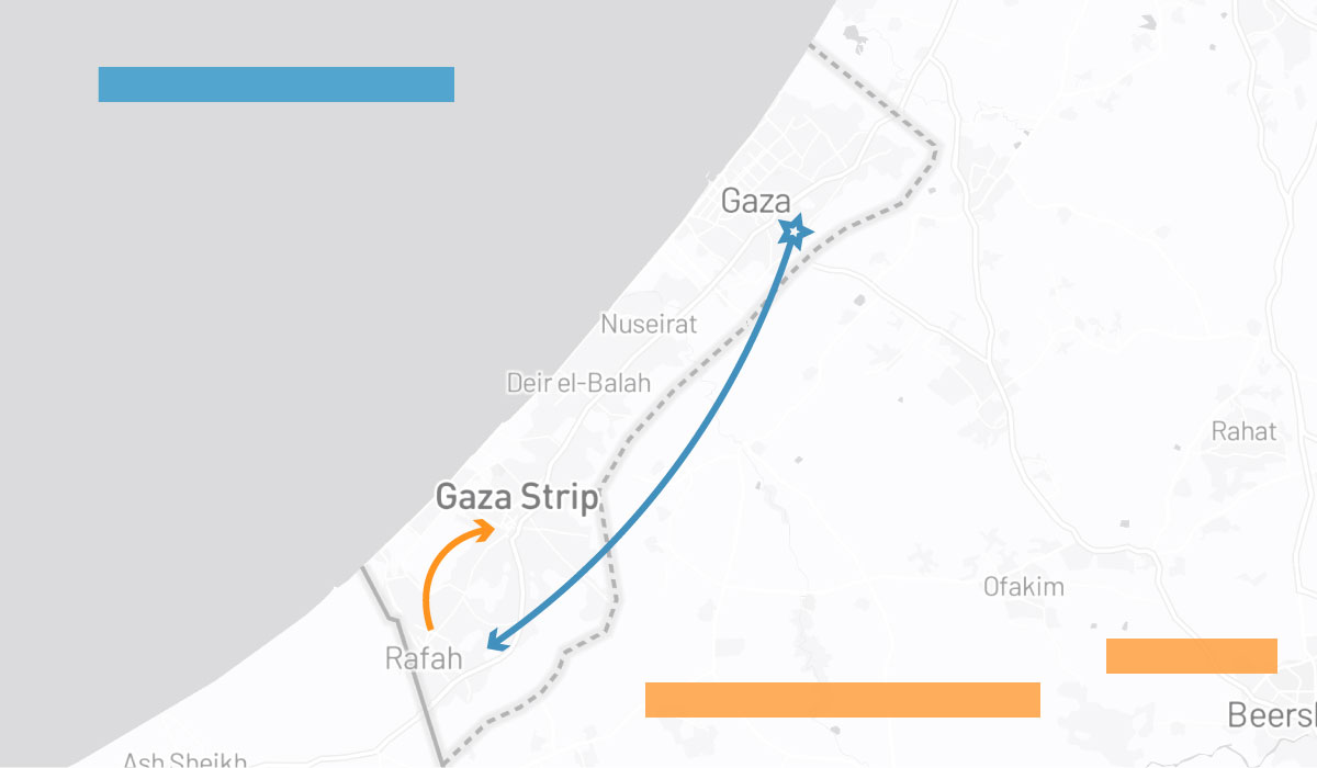 first traveled south to Rafah.