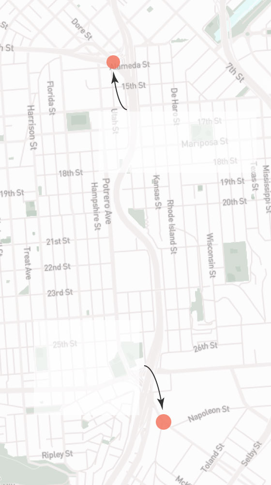 By Tuesday morning, the sprawling encampment of five or so residents, stretching a block long on Jerrold Avenue, had returned. Public Works employees tore down street dwellers’ wooden structures across from Fire Station 49 on Aug. 1. Displaced homeless people said today that they had spent some time under the nearby freeway, but returned to the sidewalk over the weekend. The site is now occupied by two couples and a few other individuals.