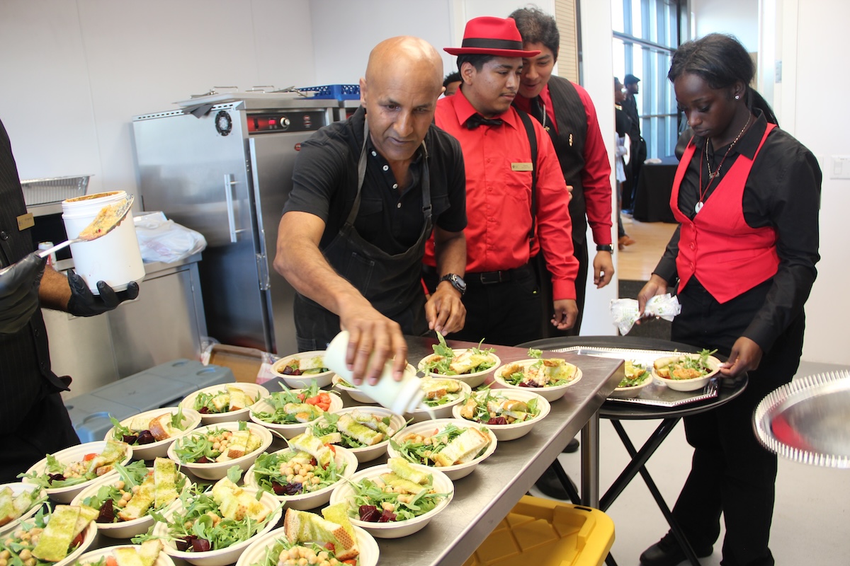 Radio Africa & Kitchen, at 4800 Third St., served up salads with at least a dozen different ingredients, including bread and a dressing that Chef Eskender Aseged drizzled over the bowls with artistic flair. Aseged told the audience it was the kind of food he grew up eating in Ethiopia.