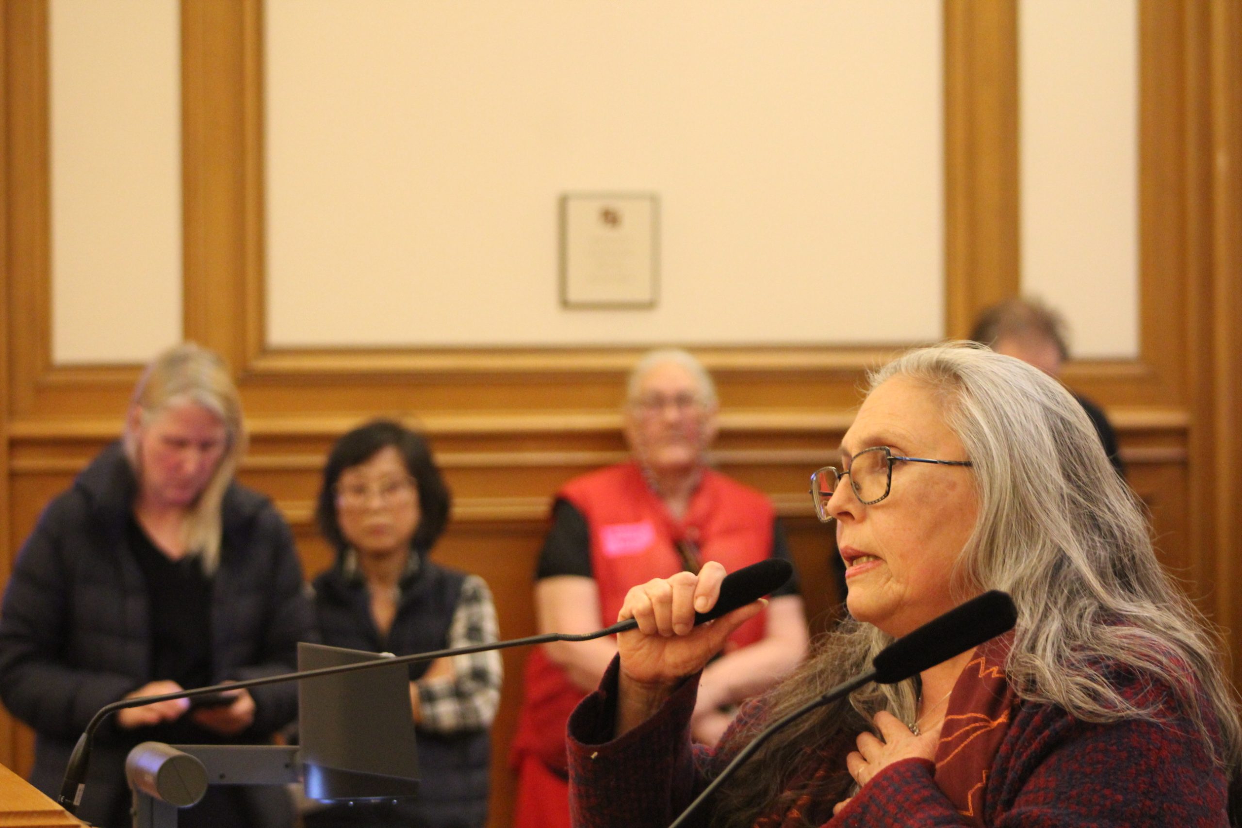 “I’m here because both my daughters were displaced from the Mission, the neighborhood where they grew up,” said Guillermina Castellanos in Spanish. “I’m here to represent all domestic workers and my daughters.”