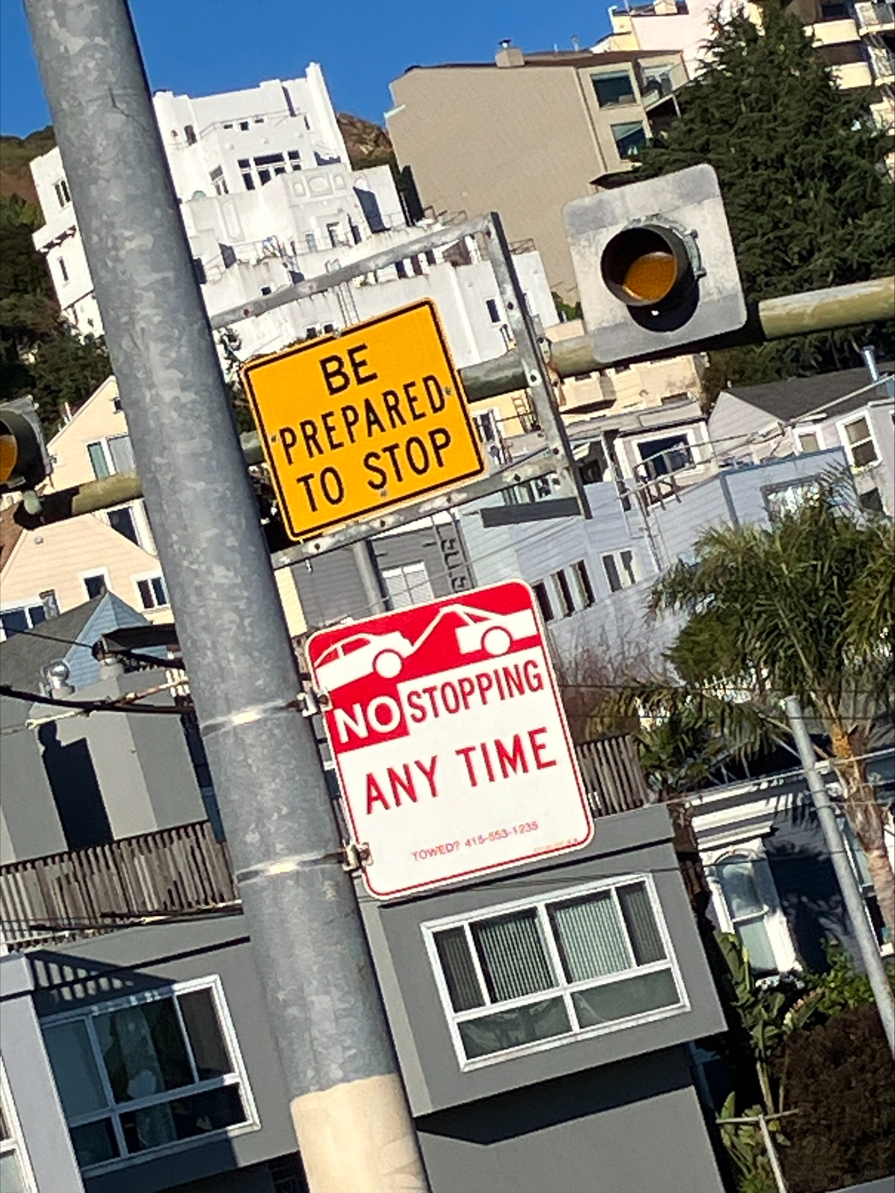 Be prepared to stop is for the light when it turns red/yellow. The don’t stop anytime means don’t park there. Common sense, don’t make an issue out of nothing when there isn’t one . Who gave you your driver’s license?