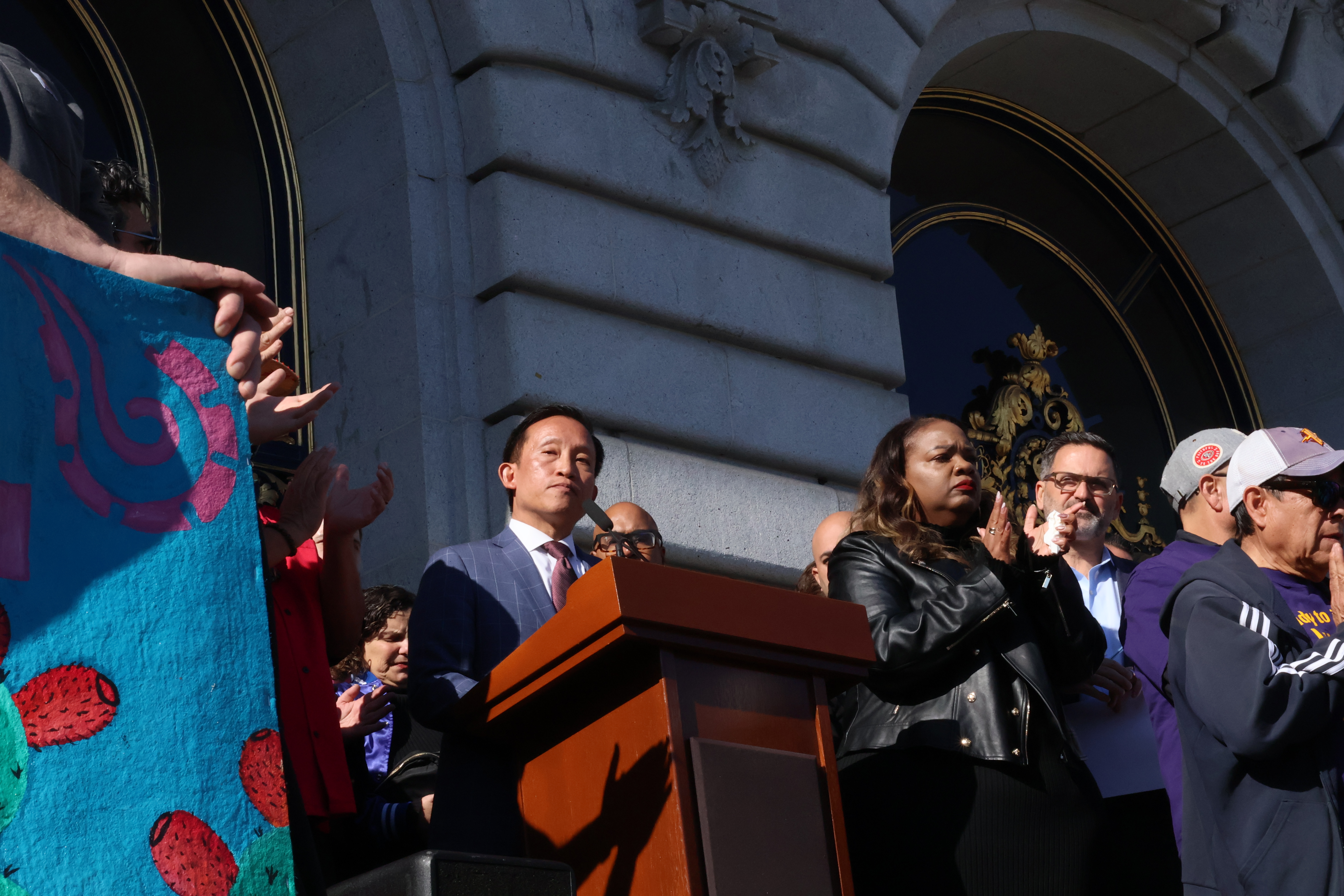 Virtually every branch of city government was represented in Tuesday’s rally, and speakers included every member of the Board of Supervisors, District Attorney Brooke Jenkins, Public Defender Mano Raju, Police Chief Bill Scott and City Attorney David Chiu, many of whom are immigrants, or were born to immigrant parents. Many union representatives were also present, including SEIU president April Verrett, who flew in from Washington, D.C., to attend the event.