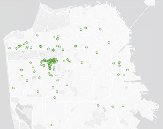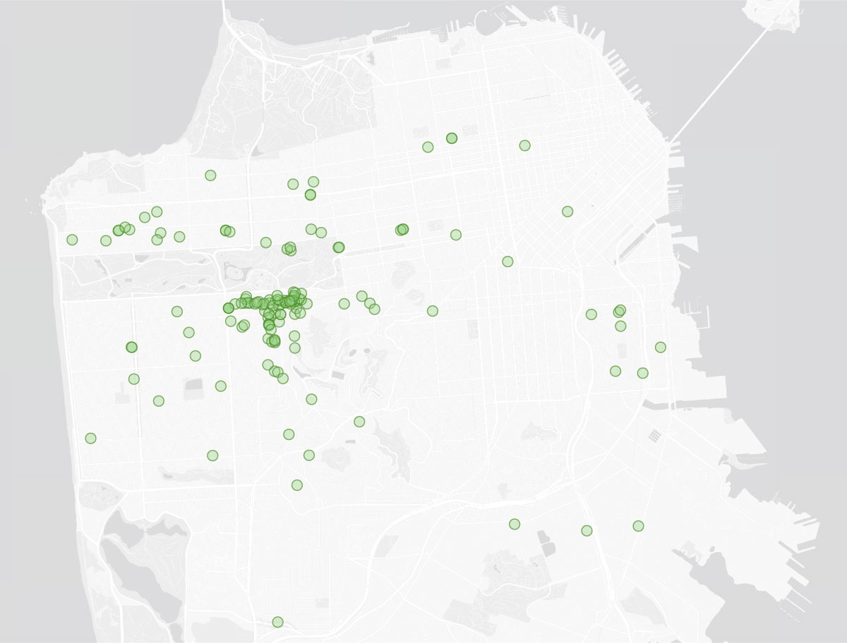 Locations of Duderstadt’s benches in San Francisco