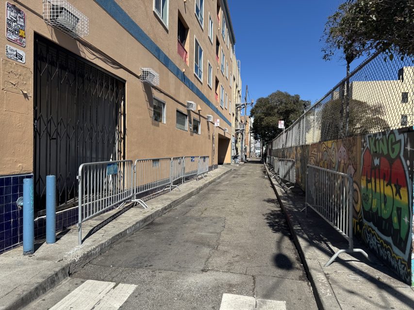 Down the street, at the intersection of Capp and 16th streets looking south, a man peeked his head out of Caritas’ door — a management company at 111 Capp St. — to check on two men bent over and barely standing outside of the building. The scene was a contrast to the intersection looking north, which was clear and quiet.