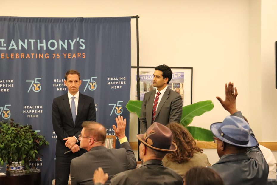 “We have a great partnership,” Mayor Daniel Lurie said as he addressed the town hall organized by St. Anthony’s Foundation, a Franciscan organization that serves the Tenderloin’s homeless population. Standing beside the mayor were District 5 Supervisor Bilal Mahmood and Lurie’s policy chief of health, homelessness and human services, former McKinsey partner Kunal Modi.