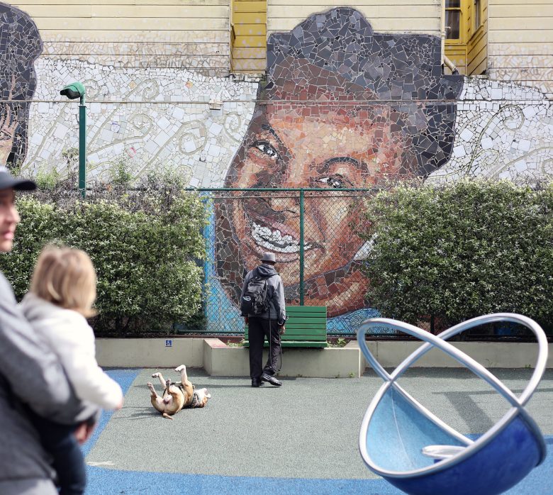 That playground is actually called Sgt. John Macaulay Park. It was named after a cop who got killed on duty. SFPD promised to provide upkeep for the park, but they haven’t in the 16 years that I’ve taken kids there. Police have repeatedly told me that that area is at the border of three precincts (Northern, Central and TL) so none of them bother to do much and when they consider it they decide it’s probably the responsibility of one of the other precincts. Captain Noble (TL Station) is the most recent one to copsplain that to me.