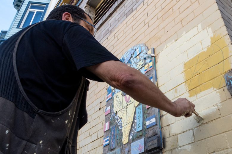 On Tuesday morning, Feliciano Aranda dipped a brush into a can of beige paint and swept it across a graffiti-covered wall outside the Kailash Hotel on Julian Avenue, just north of 16th Street. His black work vest was splattered with dried paint, and a pair of glasses sat low on his nose as he reached up with the brush.