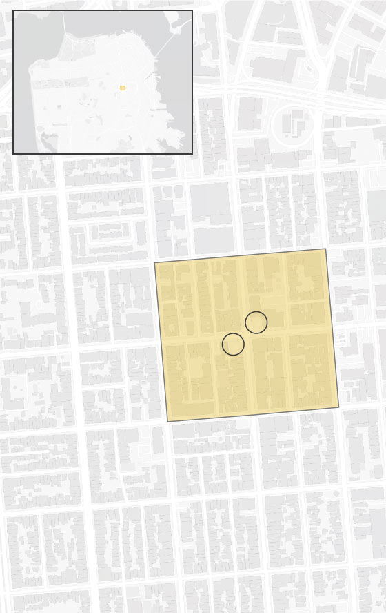 Officially, it is Census Block 201.2, a neat box bordered by Valencia and South Van Ness, and 15th and 17th streets. Overall, the square census block of 3,627 residents is less educated, but has as many residents holding doctorates as the rest of the city. It trends older and poorer, with more renters than owners, and fewer cars than the rest of the city.