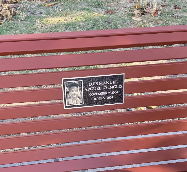 The memorial, installed through the Commemorative Bench Program, includes two plaques, one with Arguello-Inglis’ name, photo, birthdate and death date, and a second with a shortened version of an original poem on gun violence by Arguello-Inglis, written when he was 13.