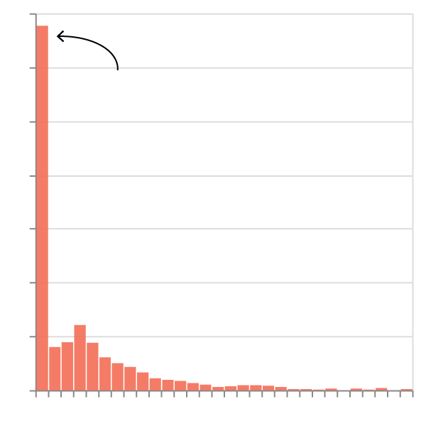 De los 1,386 individuos en nuestros datos que fueron liberados de detención o deportados, aproximadamente la mitad de ellos habían estado bajo custodia de ICE por menos de seis días. Unos 270 estuvieron detenidos por más de 30 días.