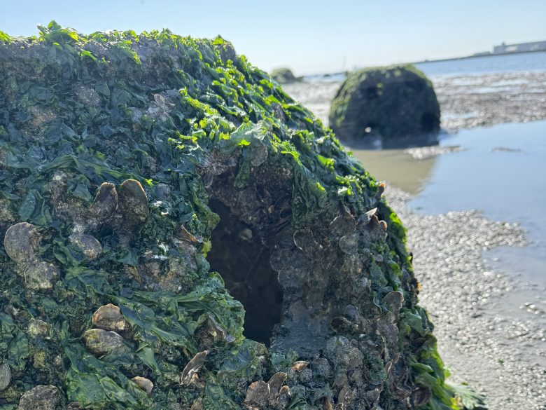 For much of the year, the oyster reef at Bayview’s Heron’s Head Park is hidden from sight below the waves, or under cover of darkness. But in the summer months, low tide coincides with daylight hours, and a flourishing oyster reef comes into view.