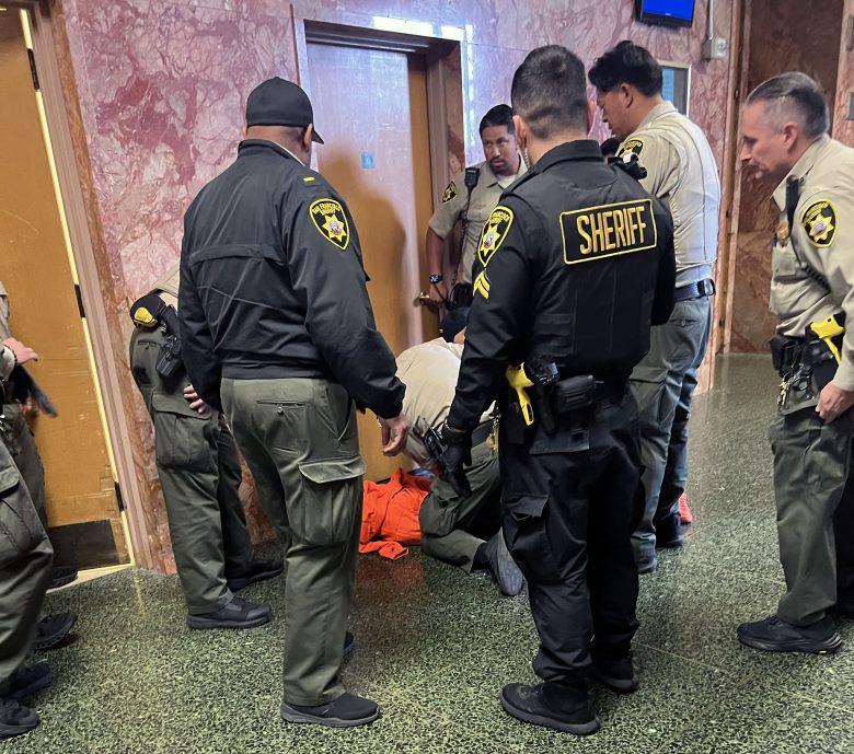 Other deputies came running, and uniformed San Francisco Police officers sitting on a bench in the hallway jumped up and joined the scuffle. Law enforcement grabbed the defendant as he continued to scream and fight, the witness continued: “It was a good wrestling match.”