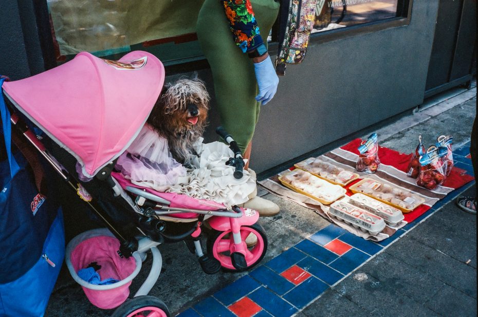 Older Asian vendors sold fresh produce, snacks, and canned goods from local food pantries, lined neatly on tarps or shopping carts. Sweets were a steady seller: Ice cream, cookies, sodas, candy.