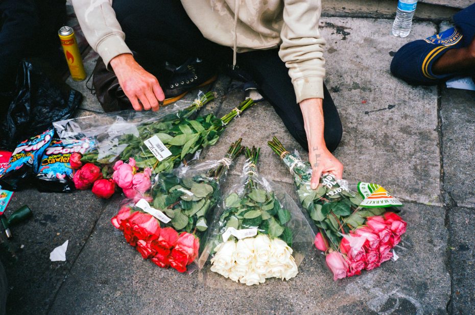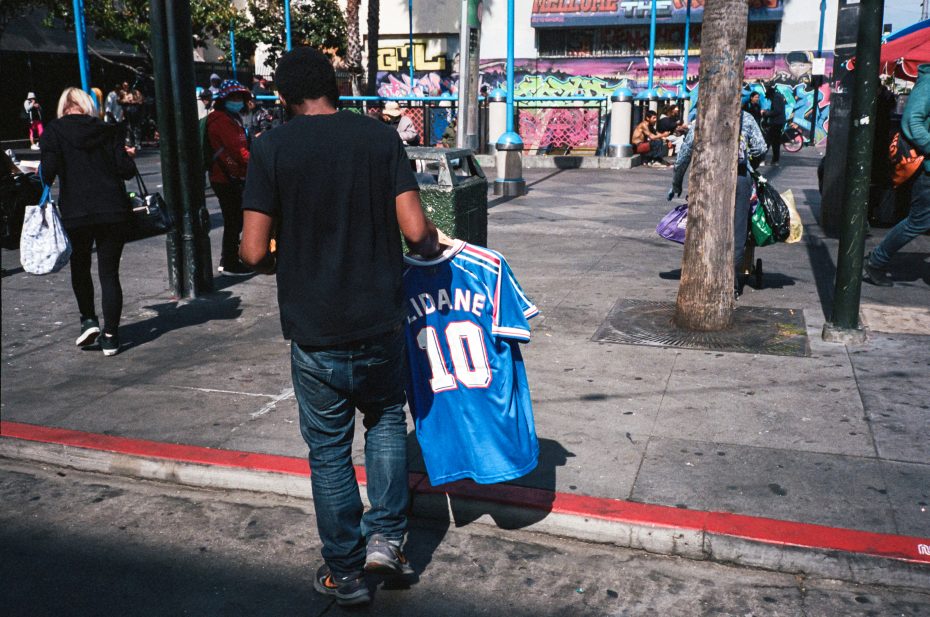 Roses in supermarket plastic were spread on the pavement, sold by the stem. Surveillance cameras, yanked from buildings, sat in piles beside a sleeping dog. A Zidane jersey dangled in the sun.