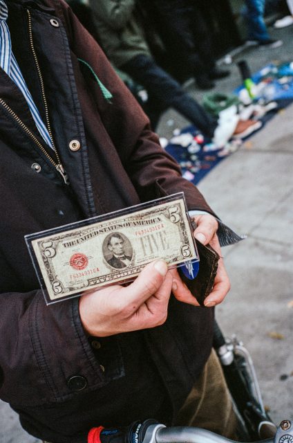 Trades could be as telling as sales. At night, one man swapped a stick of Gillette deodorant for foil and a lighter. Another displayed a vintage $5 bill in a plastic sleeve, hoping someone would pay more than face value.