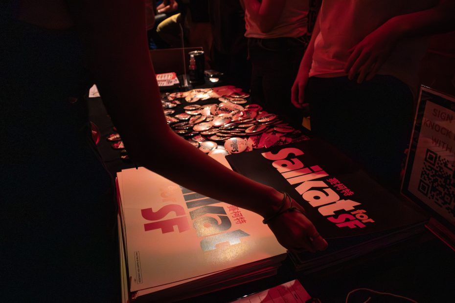 I was there. In fact the picture of “an attendee grabs a “Saikat for SF” sign” is my arm/hand.